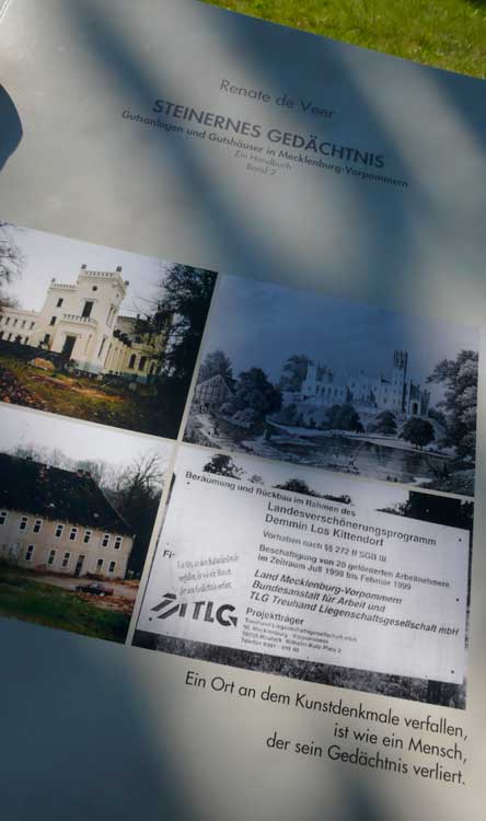 Das Stadtgut gehörte ursprünglich der Stadt Demmin und war das grösste an Land. Nichts mehr da, kein Stall, kein Park, kein Gutshaus. Der damaligen Pächter Sittner überlebte 45.