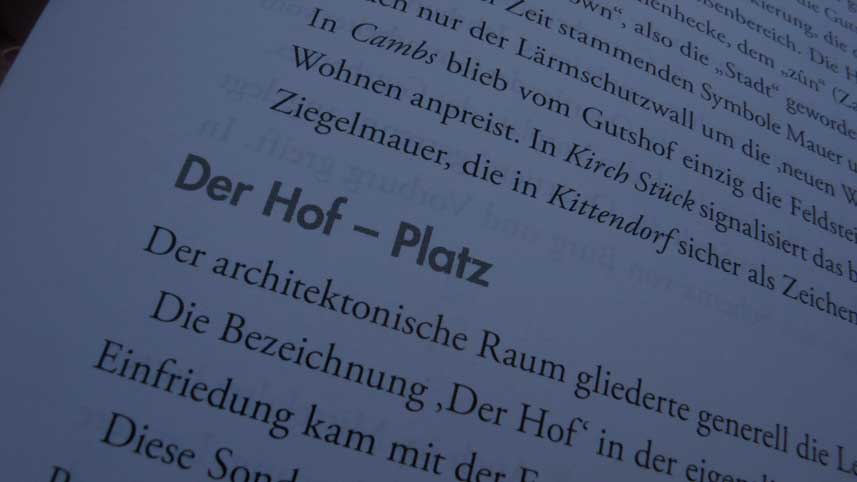 Die Kapitel des Textes beweisen die akademisch-architektonische Ausbildung und erinnern an selbsterfahrene Aufgaben und praktisch zu lernende Probleme aus dem Nichts des Anfangs.