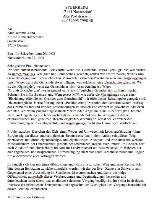 an den mit der Flurerneuerung betrauten Herrn H. in Altentreptow
