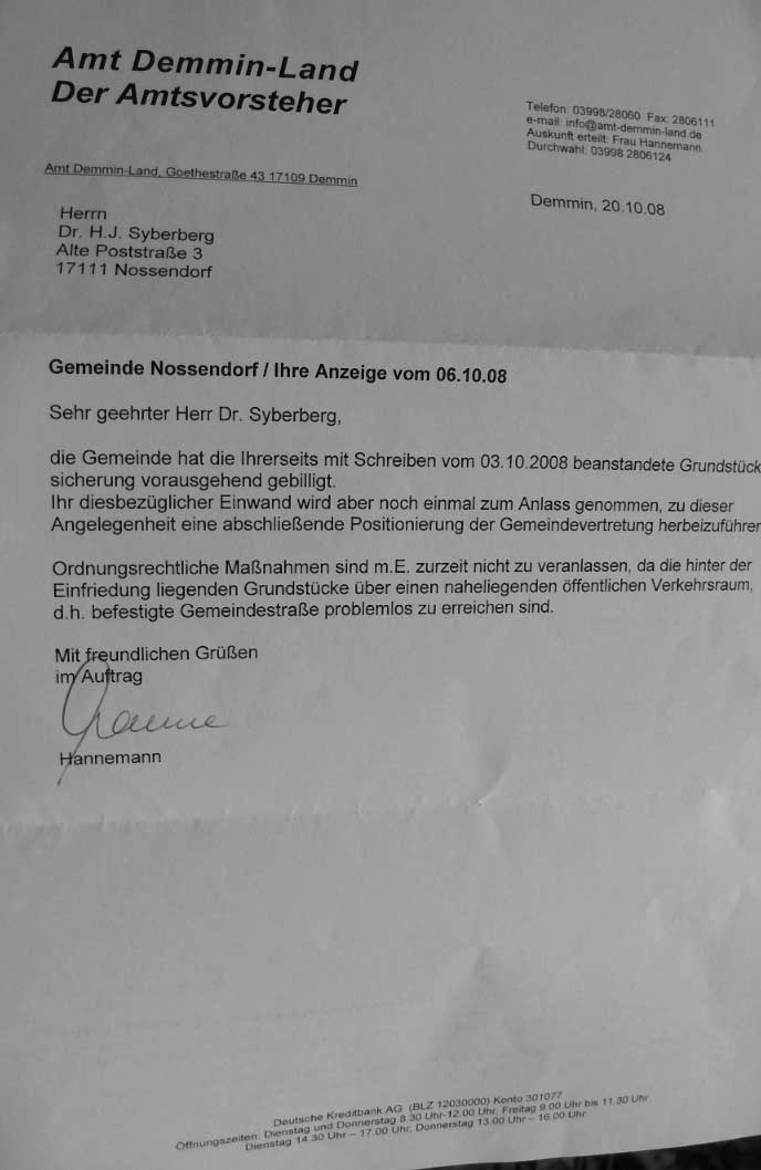 Briefe in der Sache des Weges zur Kirche und zur ehem. Schule (siehe Traum was sonst) geschickt an (siehe rechts)