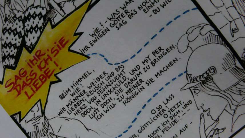 Nun wirds wieder ein Film daraus, der wahre als Comic, man kann lachen von Bild zu Bild. Die Inbrunst des Gelächters im Erzittern. Angesichts dessen, ders erfand.