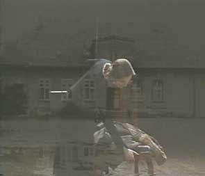 Der Wechsel der Fassade zurück in die Gestalt vor 45 zur Bewegung von Musik und Stuhl-Aktion sagt uns die Richtung, die es am Ende vielleicht als Traum in der Realität noch einmal nehem könnte. Als Vollendung aller Dinge. Der Stuhl wieder am Platz - wo er nie war. Der Film wurde mit diesen Projektionen 1994 also nach dem Fall der Mauer gemacht.