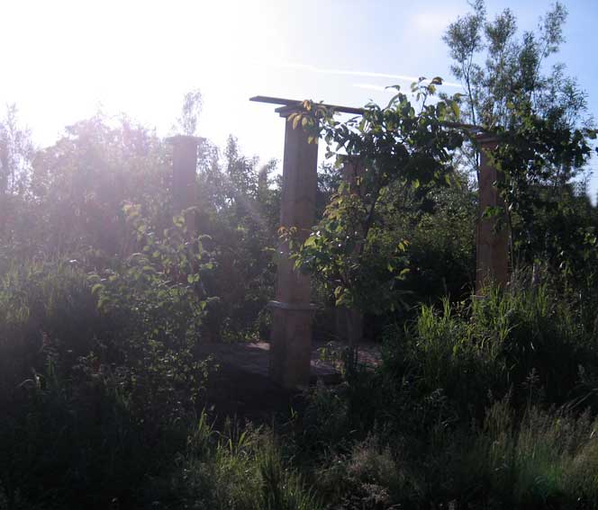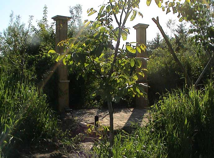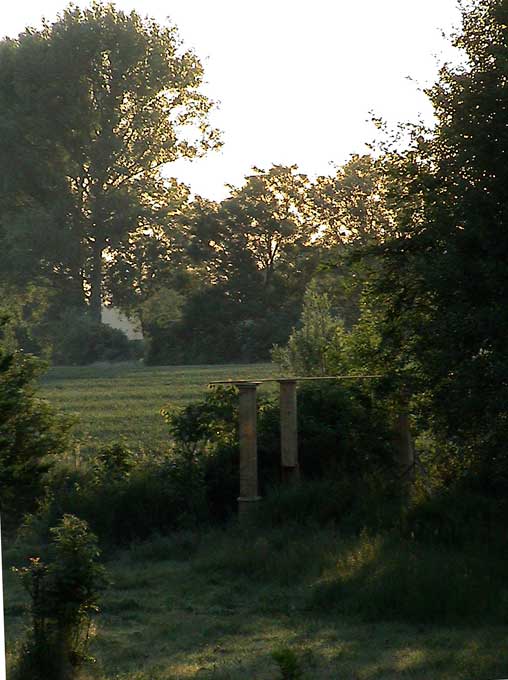 Das Tempelchen, der Platz gegenüber, am Ende des Parks einmal, vor den Feldern und hinten dem Wald, ist nun neues Zeichen der Fassung hinten, wie vorne die Kirche, der Turm.