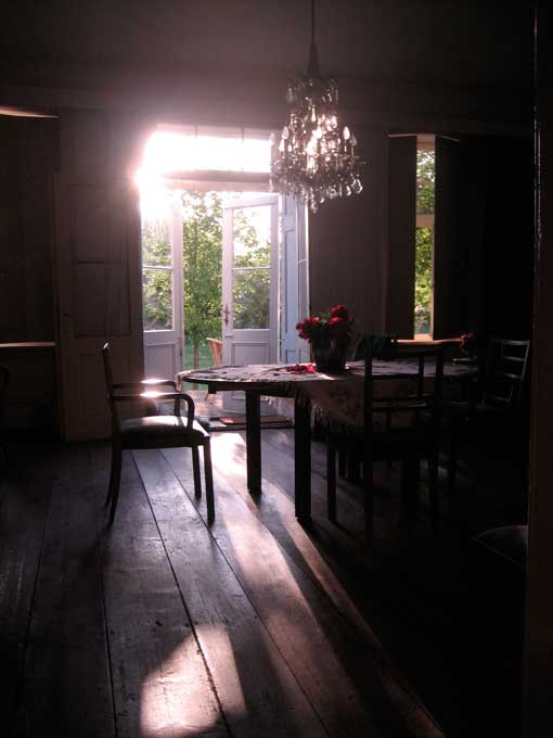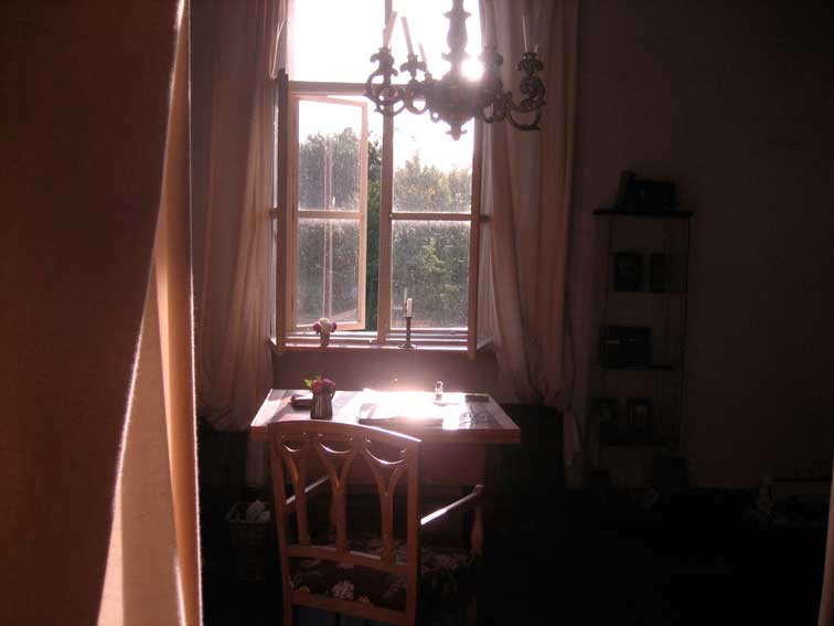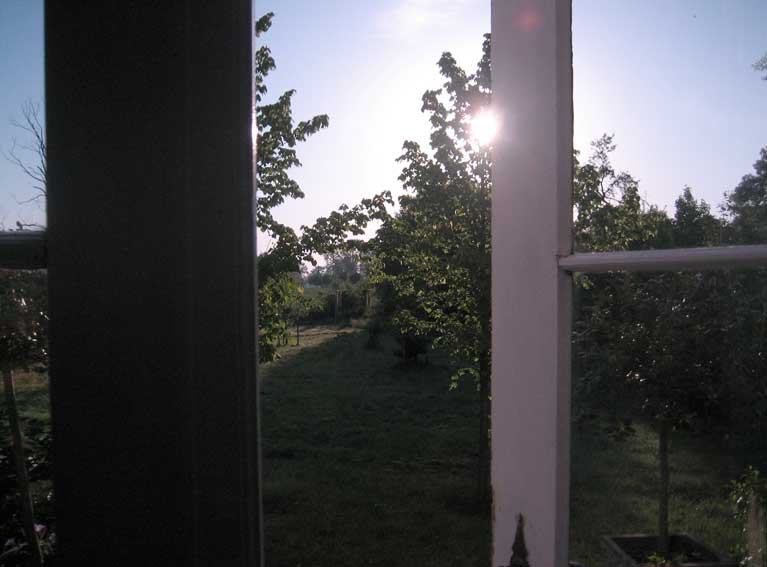 Wenn sich Morgen und Abend von innen und aussen treffen. Am Abend steht es da, als 4-Pfeiler Platz gegenüber, auf die Tür schauend des Morgens Eos, der rosenfingrigen.