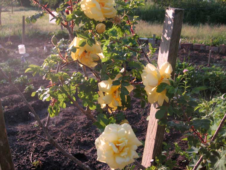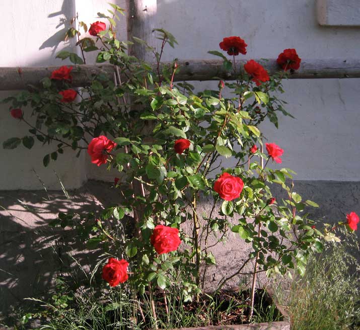 Und so ist es auch hier der Umgebungs-Faktor, der der Rose ihre wahre Gestalt in Würde gibt. In München war diese Persian Yellow auf dem Garagendach im Halbschatten gut gehalten aber Topf und Umgebung machten sie arm. So bedenke man die Haltung der Tiere und dessen, was wir essen und uns selbst. Woher wir kommen, wie sie kommen, wie sie um sich leben, machen das Gesicht und die Erscheinung mehr als schnelle Blüte des verkäuflichen Gebrauchs..