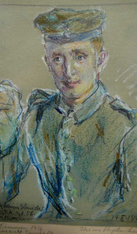 Lange gab es dieses Vakuum im Ablauf ihrer Tätigkeiten als Malerin in den Kriegen. Diese Porträts zeigen sie während ihrer Arbeit in den Lazaretten, wo sie ihre Modelle fand. Warum diese, genau bezeichnet wer und wo sie dienten, ohne Blessuren und aufrechts sitzend.
