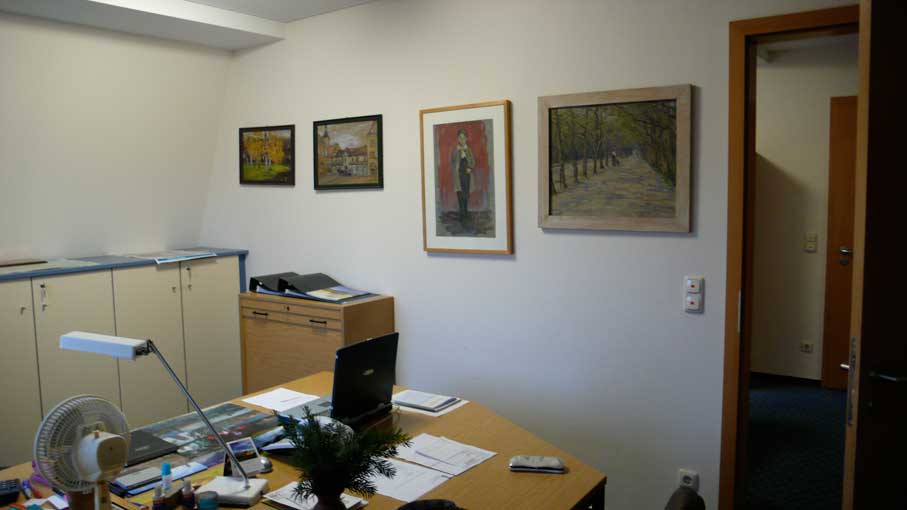 Beim Stellvertreter des Bürgermeisters und Leiter des Ordnungsamtes dann weitere Bilder zwischen Akten und Schreibtischen. Aber auch hier immerhin das. Treue Liebhaber des Werks am Ort ihrer Herkunft in den Amtsstuben selbst. Und wir werden noch sehen, diese Freude geht auch in die privaten Wohnungen dann.
