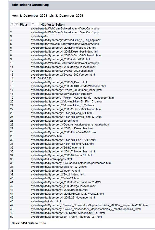 Donnerstag, den 4. Dezember Besucher/Visits gestern 9 454
