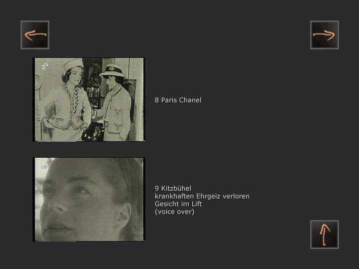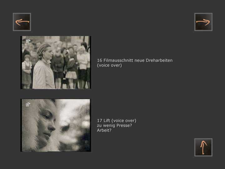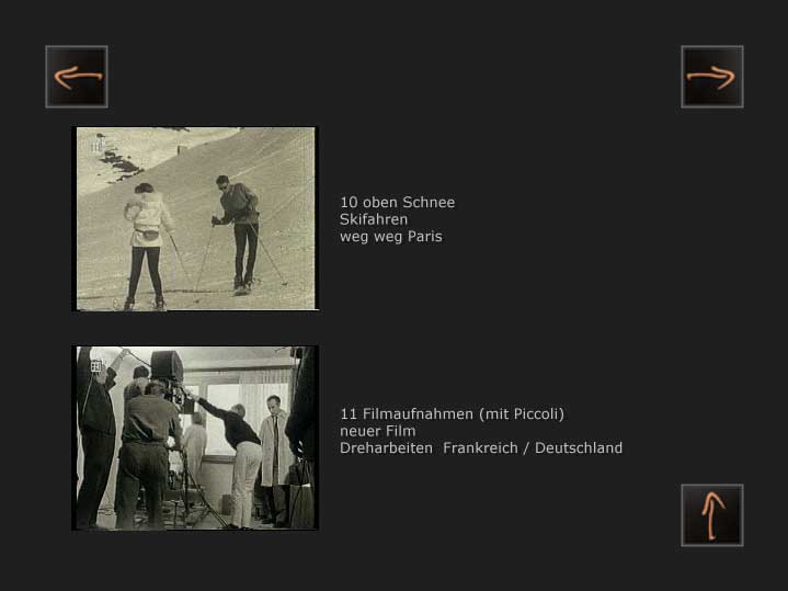 Vieles ist eingeschnitten, die Aufnahmen in Paris( Wohnung und Strassen)und während der Dreharbeiten zum neuen Film Schornstein 4 machte der Kameramann Kurt Lorenz auf genaue Anweisung und nach gemeinamer Kenntnis auch von der Kortner Probe. Die Musik kam von Romy Platten und die Fotos waren die der Illustrierten auf dem Tisch. Die Aufnahmen in Kitzbühel entstanden aus gemeinsamer Gegenwart, die am Kamin sind die eigentliche, wichtige, Ernte der Begegnung und Situation.