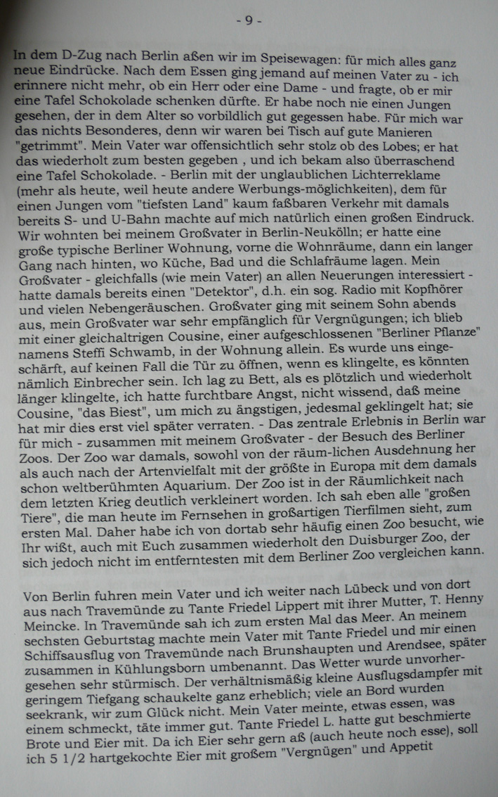 Was mag den damaligen Jungen bewegt haben, dass er am Ende des Lebens immer wiederkommt, sich das Land des Kindes wieder zu suchen und alle Veränderungen zu ertragen. Nun selbst mit Kindern und Kindeskindern, die ganz andere Erlebnisse haben.