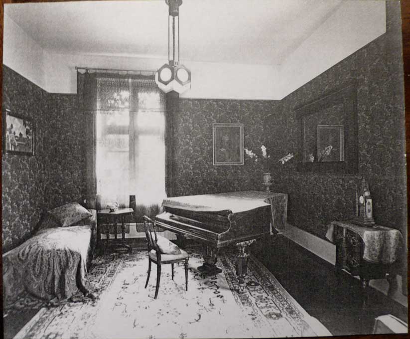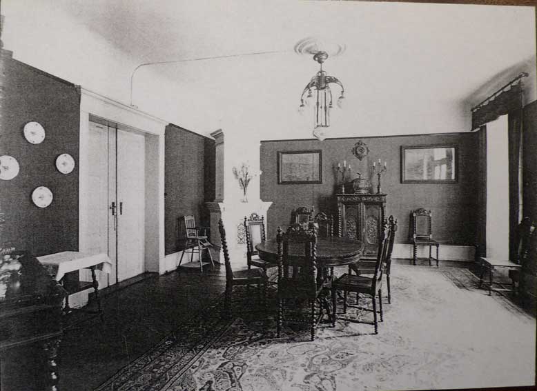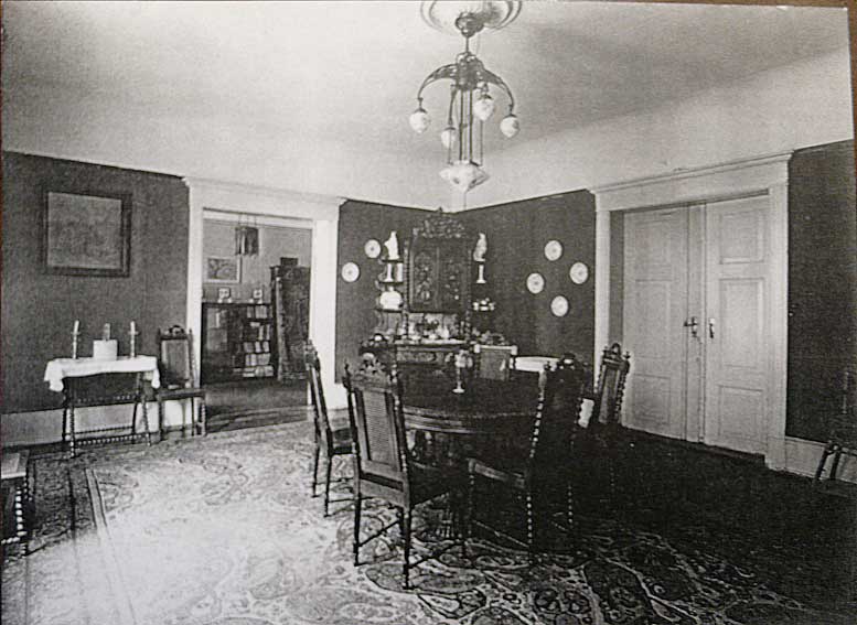 Das Esszimmer wieder mit einem Ofen den ich nicht mehr erinnere. Und die Möbel aus Paris (?) In der Mitte der Tisch . Aber ohnen Rubenszitat und Land und ohne die Prinzessinnen der Marquise noch, die soweit her kommen mussten. Im Zimmer daneben als Kappelle des Lebens. Die Türen auch noch intakt.