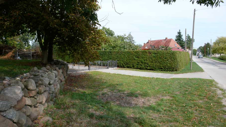 das also die Vorderseite des Eingangs zum Hof früher und heute. Wer da Schmutz sucht und reinigungspflichten amhnt, muss anderes im Sinn haben und man sollte in der Lebensgeschichte nachforschen warum wohl. De Schlüssel zur Kirche für vorbeifahrende Interessenten und Freunde die ihrer würdig sind, liegt hier und wir bestehen, obwohl als einzige nicht befragt, auf freien Zugang ohne Hindernisse.