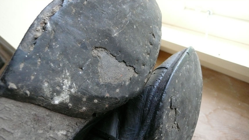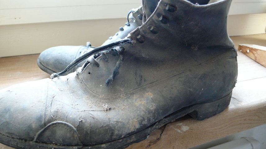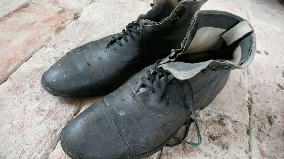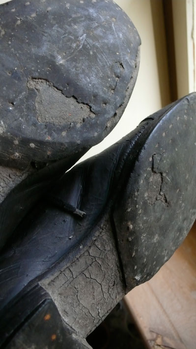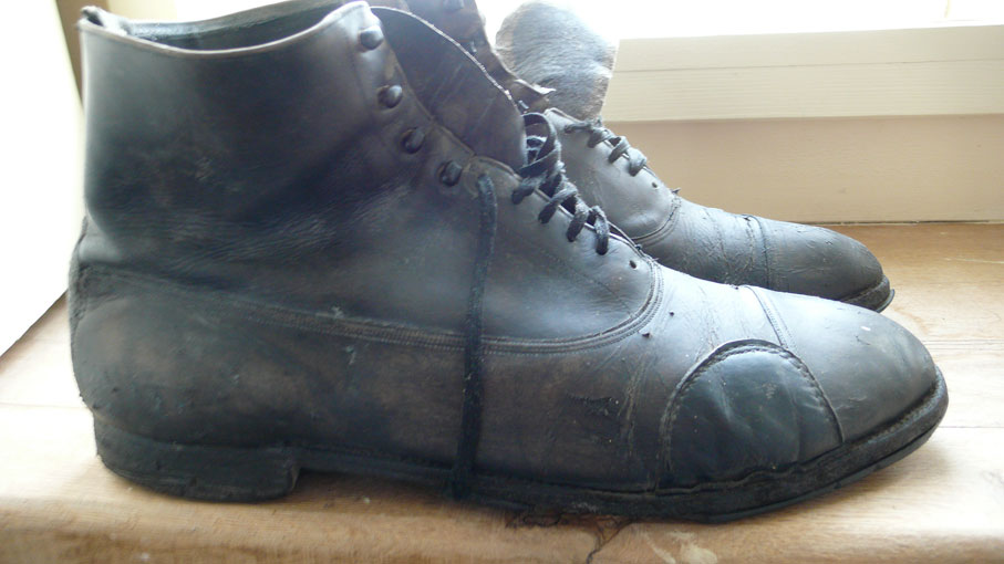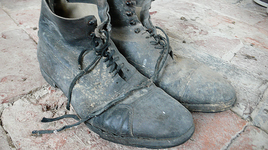 Die Schuhe stammen aus dem armen Haus Heyden Linden in Demmin seines grössten Reichtums, geborgen im Herbst 2008.