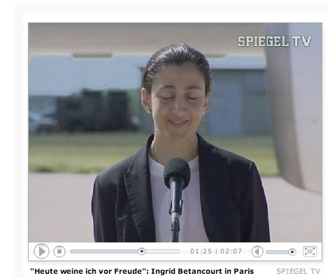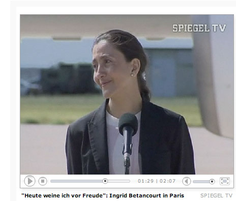 Ein Verteidigungsministerum veröffentlicht seinen Film der Befreiung auf YOU TUBE.Und die Befreite dankt einem Sarkozy, dass er es unblutig empfohlen.