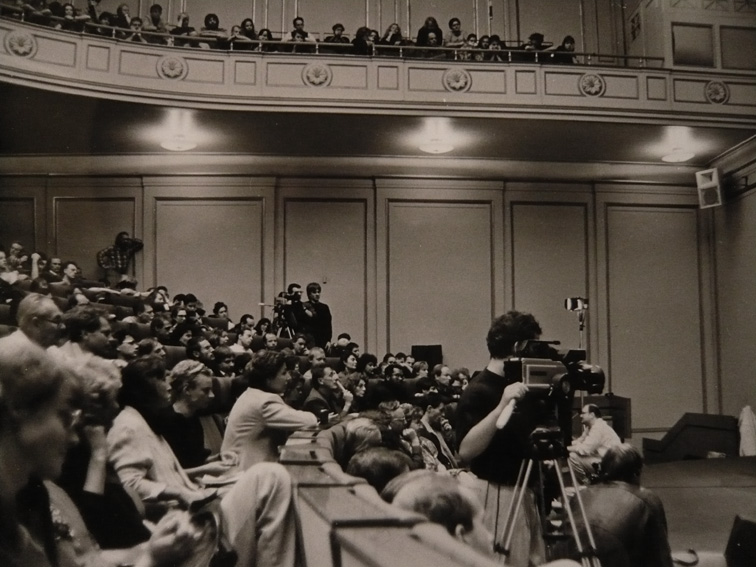 1990 Berlin, Akademie der Künste ost. Nach der Vorführung des Hitlerfilms.