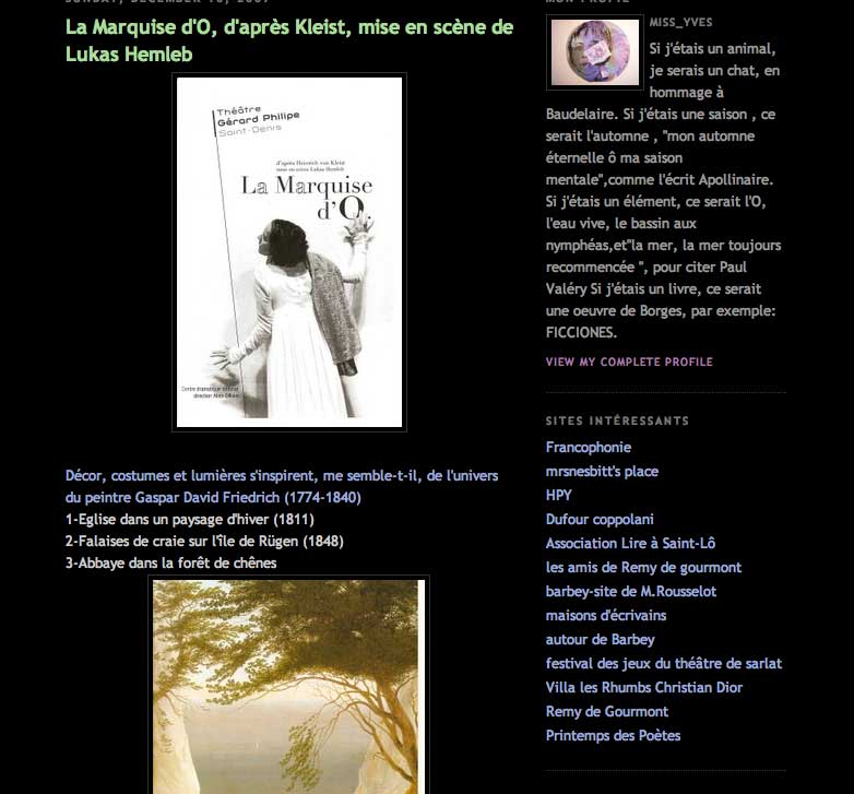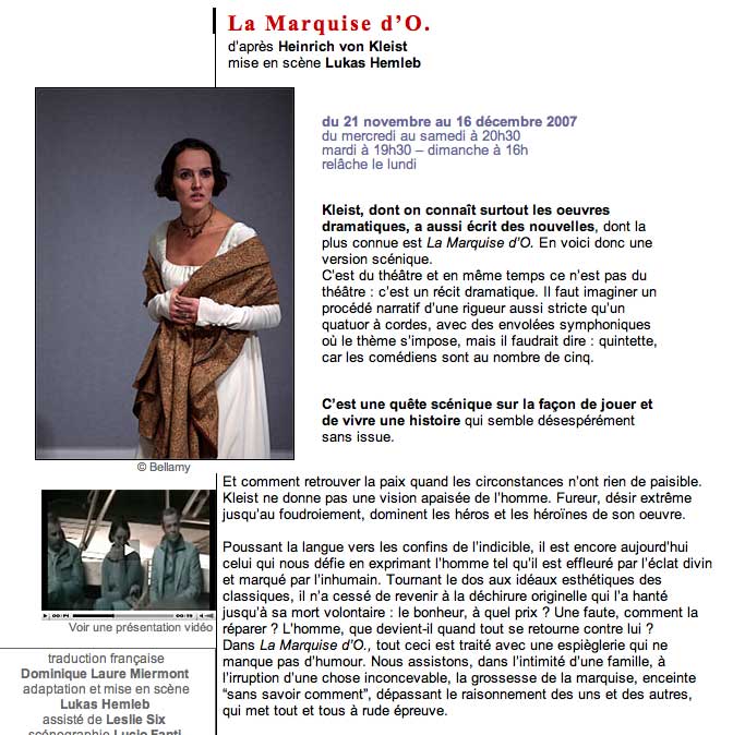 wer heute bei Google unter dem Stichwort Marquise d O sucht wird an erster Stelle vorne einen sehen, der Hemleb heisst und der nun in Frankreich reussiert.
