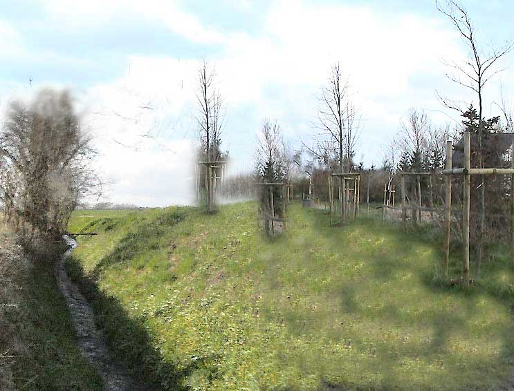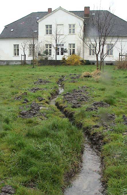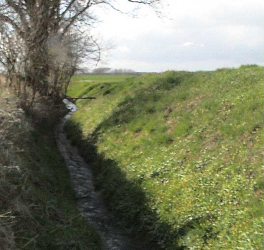 Hier war der eiszeitliche Graben 3 Meter tief und 4 meter breit mit einer Durchfahrt der kindlicher Erinnerung ein Eldorado aus Flieder Linden, Fröschen und Vögeln.