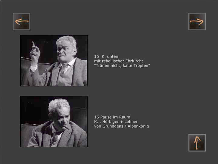 wofür steht Kortner. Und was hat er in diesem Universum hier für eine Stelle. Ohne Wagner noch, aber auf Clever zu führend, alles weg, was dazwischen war, das Schaubühnenorganum. Und Fassbinderwahn auf einem anderen Stern, Stern? Alle sprechen gerne von Brecht und RW. Von Kortner, dem der Regie, wüsste heute niemand -ausserhalb unserer Grenzen- ohne diese Filme. Und die, die sie sich immer auf ihn gerne als Schüler berufen, was haben sie denn für ihn getan. Und was war daran der Juden Teil, auf den er sich gerne berief, und was deutsch, in welcher Symbiose hat sich das verbündet, interessante Fragen. Und wenn die anderen zu Adorno pilgerten, dem anderen Emigranten, als Obervater - des Papiers, hier war der Lehrer einer der Tat, auf den Bühnen der Theater, wenn es Welt wird. RH, der spätere Produzent der Romy erzwungenermasse, wo er wieder versagte, der alles hinwarf als es ihm zu komplizeirt wurde, dachte ich sei verrückt in meiner Hörigkeit, wie er das nannte, und wusste doch nichts.Selbst SUSAN IST ER ENTGANGEN.