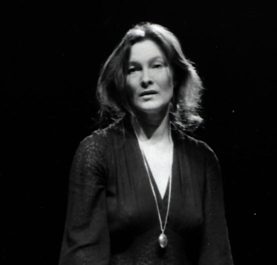 Das Bild von Edith Clever auf der Bühne zur Genet-Inszenierung der Zofen in Wien
