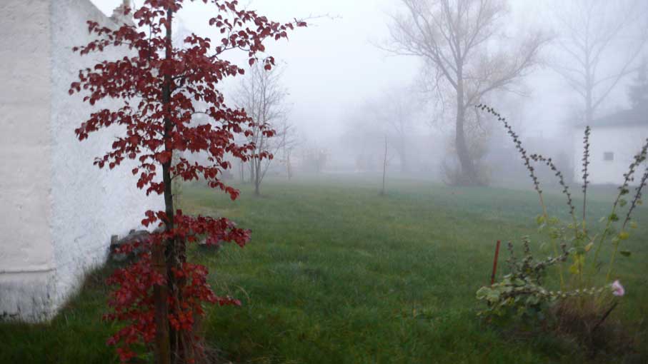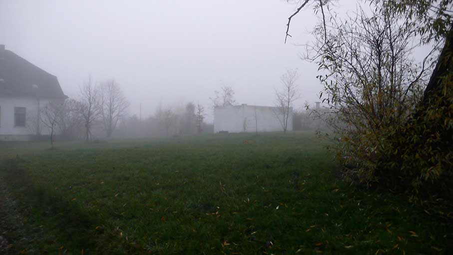 Hierhin kann man ohne Nebel noch und vor dem Grün im Sommer das gnädig langsam rettet nicht schauen