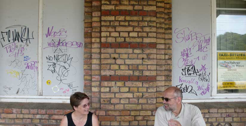 dEr Bürgermeister wird sagen nicht unser Terrain, er fährt mit dem Auto, der Landrat(Die Linke)wird sagen, nicht mein Revier, Autofahrer mit Dienstwagen, die Bahn sagt, Bahnhof der 6 Stufe, solln froh sein, dass überhaupt noch, Dienstleister, die Polizei schüttelt den Kopf. Erst seit der Wende. Deutsch DAS LAND IST FREI. Und die Bundeskanzlerin, eine Frau, mit Dienstwagen, kommt daher.