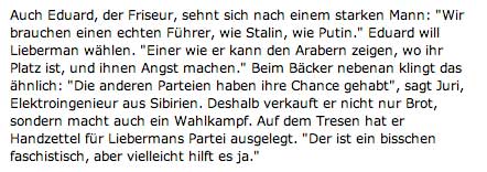Heute wählt Israel. Und wir fragen uns, was unsere sich gerne in ausländische Belange einmischende Bundeskanzlerin dazu getan hat dort Klarheit zu verlangen. Als Land das tief in die Entstehung dieses Staates verstrickt ist, haben wir Verantwortung, zu warnen, wenn wir aktive Politk machen wollen. Zumal es hier um die Hauptwunde der Welt geht.
