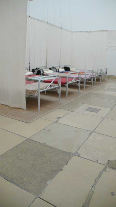 schreibt er, schaut er den Handwerkern einfach zu, lässt sie machen, bei dem,