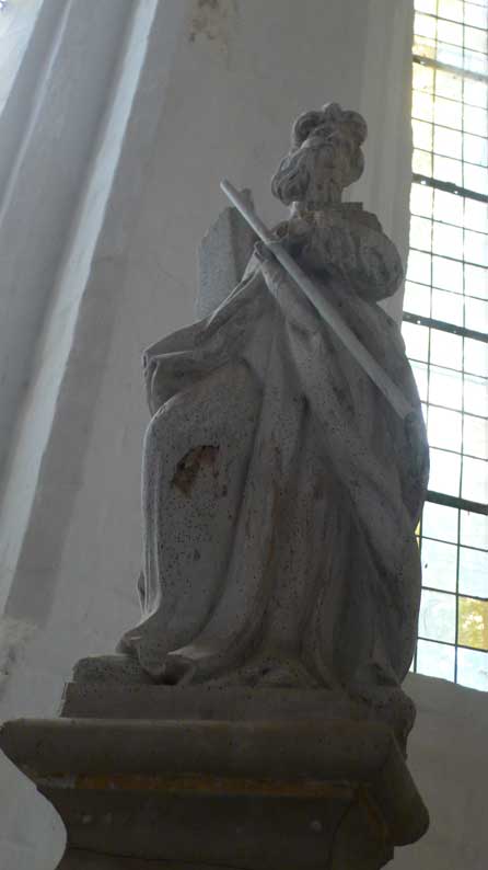 links wohl Moses neben dem Altar als Figur auf der Barriere, rechts die Figur ist verloren, wohl der neue Bund, eventuell Johannes der Täufer.