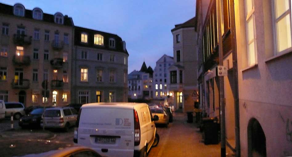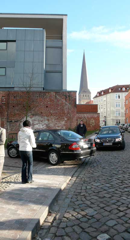 Hier, erzählt HP, der Freund seit der Rostocker Tage, war sein Kinderzimmer, wo nichts merh ist. Zwischen den Autos links in der Mitte, wohindurchgeht der Wind.