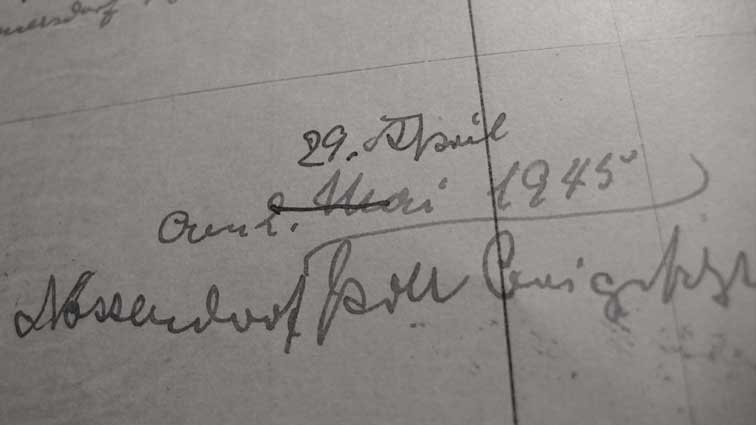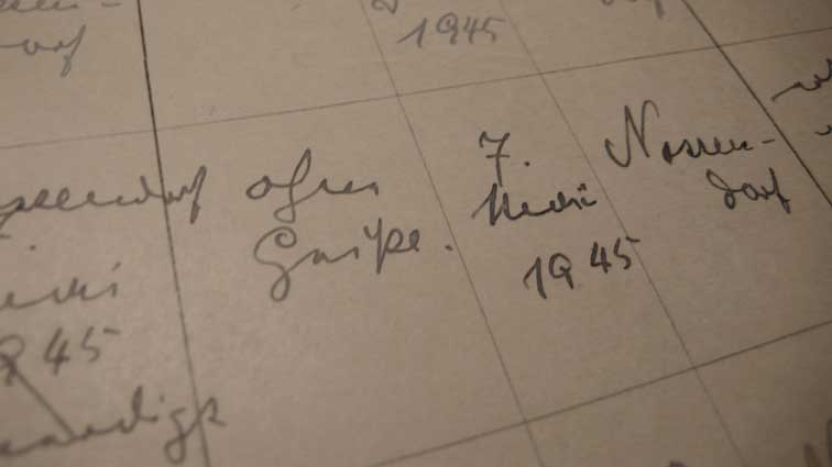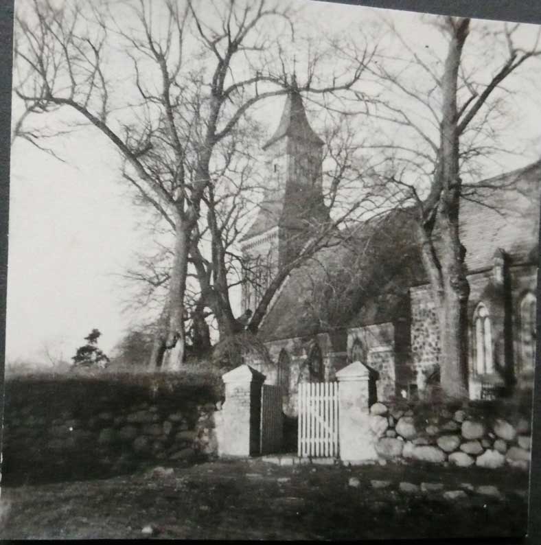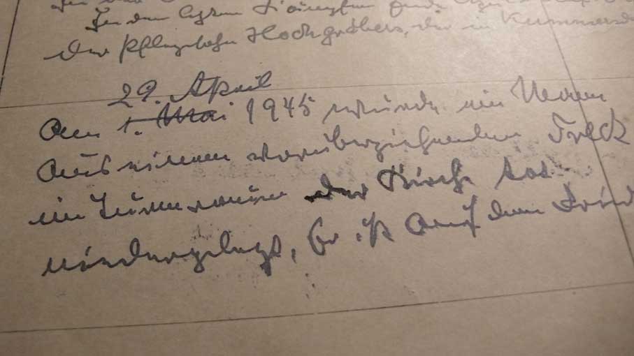 "am 29.April 19$5 wurde ein Mann aus einem vorüberziehenden Treck im Innenraum der Kirche tot niedergelegt Er ist auf den Friedhof neigesetzt"