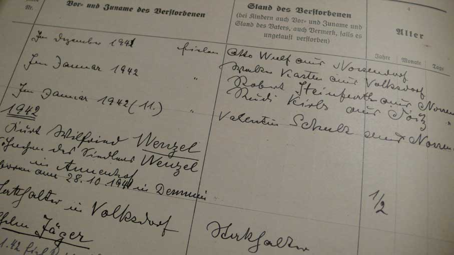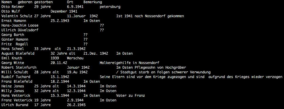 Aus dem Kirchenbuch von Nossendorf. Eintragungen während des Krieges
