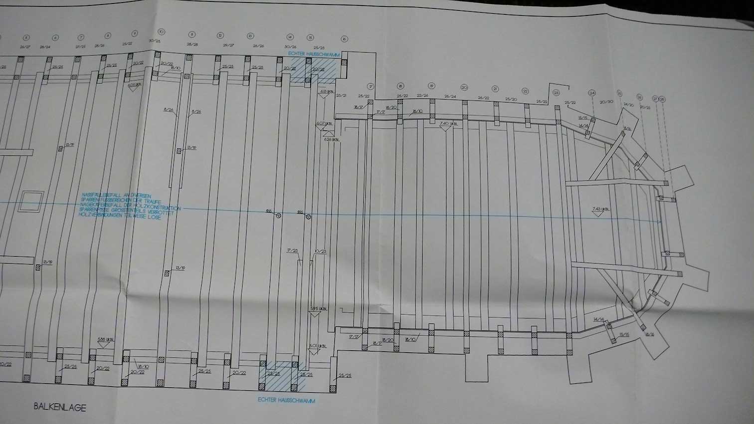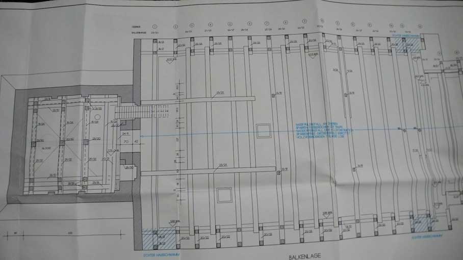 Balkendecke mit zu Massen für die neue Holzdecke