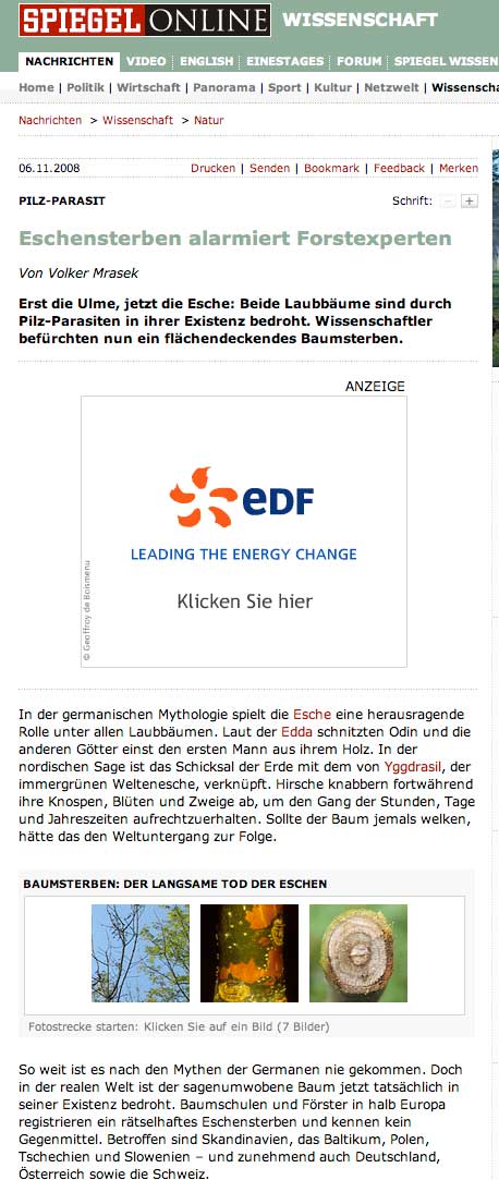 Ulmen zuerst, jetzt die Eschen, die Erlen als nächste. Aber sie laufen rum und fällen die Pappeln, 100 und werden noch weiter gewählt wer solches tat. Es verbrechen, die tilgt kein Entschulden.