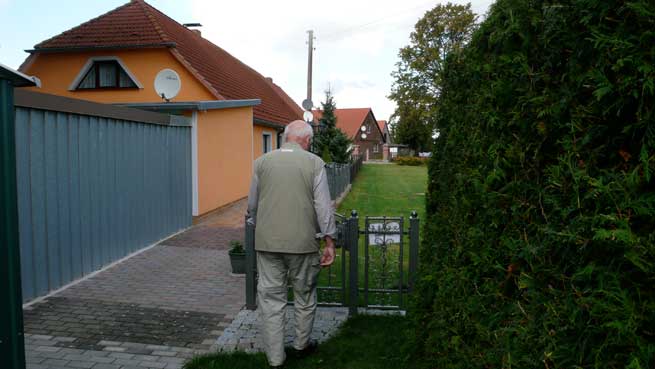 Auf der Reise von Stettin, wo er geboren ist, nach Stralsund wo er arbeitete, auf der Werft, über Nossendorf, wo wir susammen zur Schule gingen nach 45, nach der Flucht. Karl Heinz Reifschläger, den wir Heini nannten. Nun mit neuer Frau,