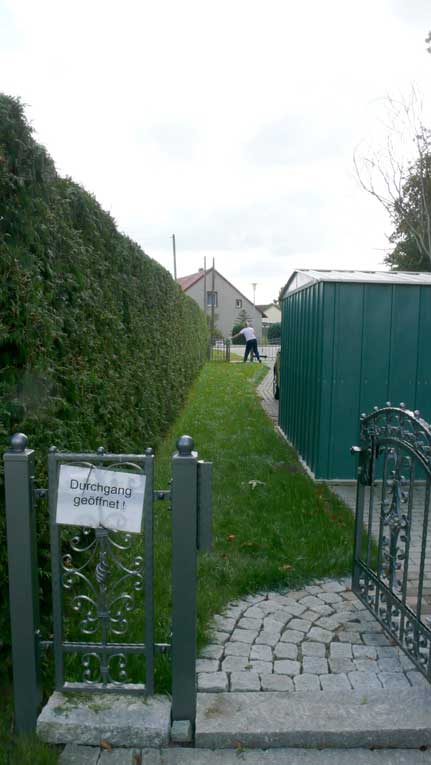 den öffentlichen Weg. So freundlich wie wir da gehen immer gehen, immer gingen und leben, warum nicht nebeneinander, nur nicht zumachen Sperren.Aussperen.