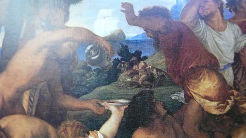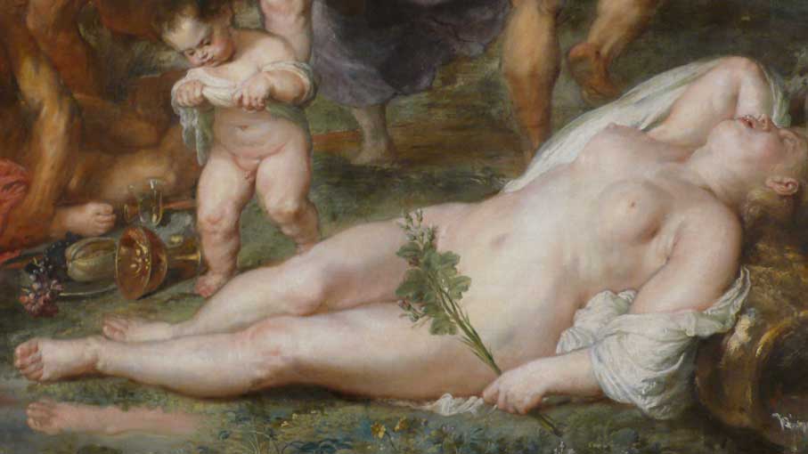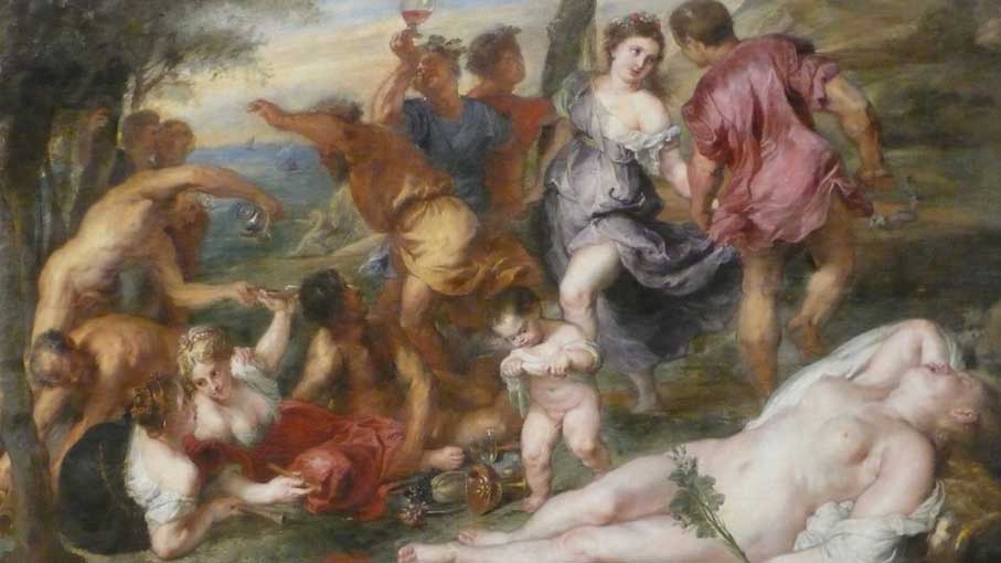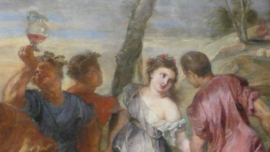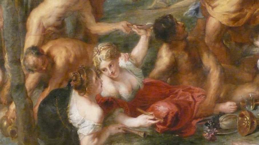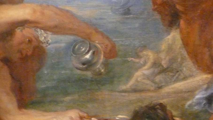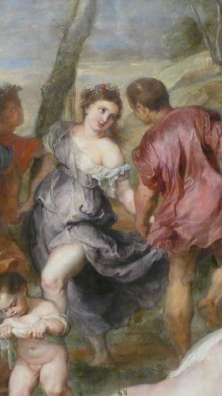 hinten der Bacchus mit dem Krug am Brunnen - bei Rubens(oben) die Frau mit