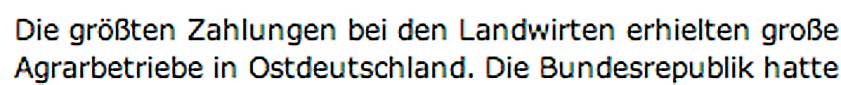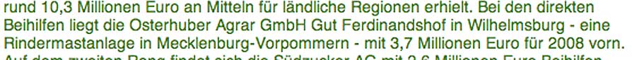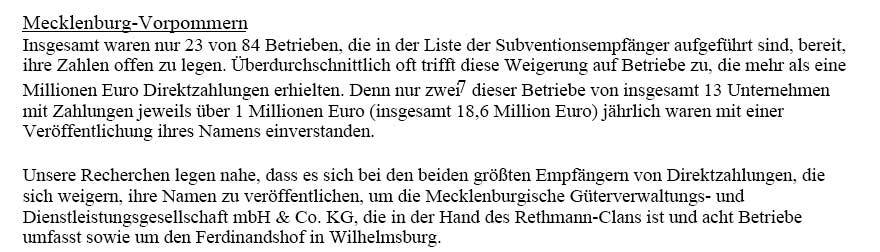 Die hier heute wirtschaftenden Hauptbesitzer der landwirtschaftlichen Flächen Henke und Tietböhl oder Leddig, zusammengeschlossen unter dem Label Landbau Demmin Ag, stehen nicht in den veröffentlichten Listen der EU-Subventionsempfänger.