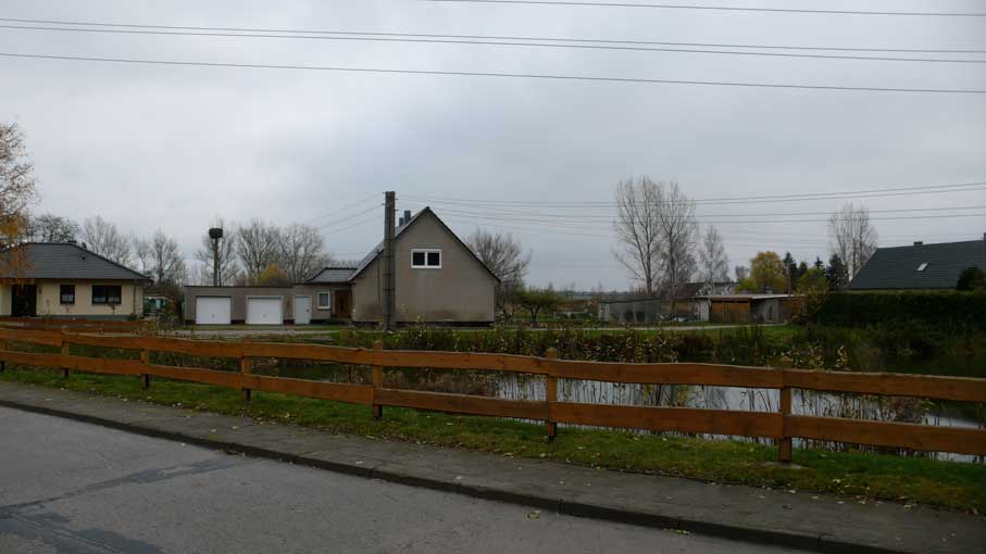 Hier hilft keine Hilfsmassnahme dem Menschenrecht des Auges zu genügen. Oder man müsste wollen.Ganz hinten, Das Nest und eine Teichbepflanzung, zwischen den Häusern, übers Land, die Türme von Demmin und Wotenick, bei schönem Wetter,