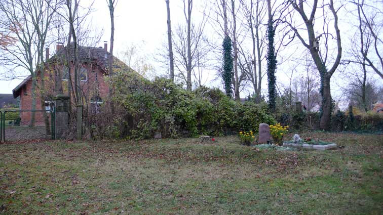 Wieder hier: die fehlenden Hecken oder natürlichen Abrenzungen. Der Friedhof wird ausgesetzt.