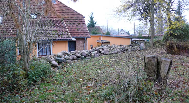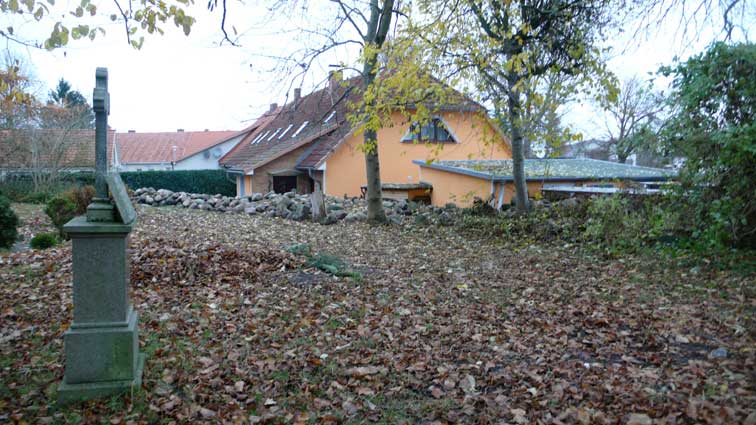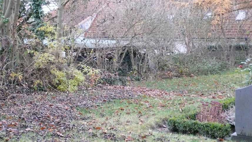 Was auffällt, sind die Annäherungen, gegen übliches Baurecht, an die Friedhofsmauer und gerade hier die Beseitigung der Grenzbepflanzungen.