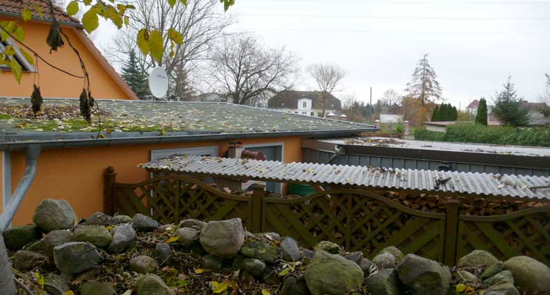 man sieht es genau, wie hier alles was grün ist an den Hütten und vorgebauten Hausecken auf dem Friedhof entfernt wurde