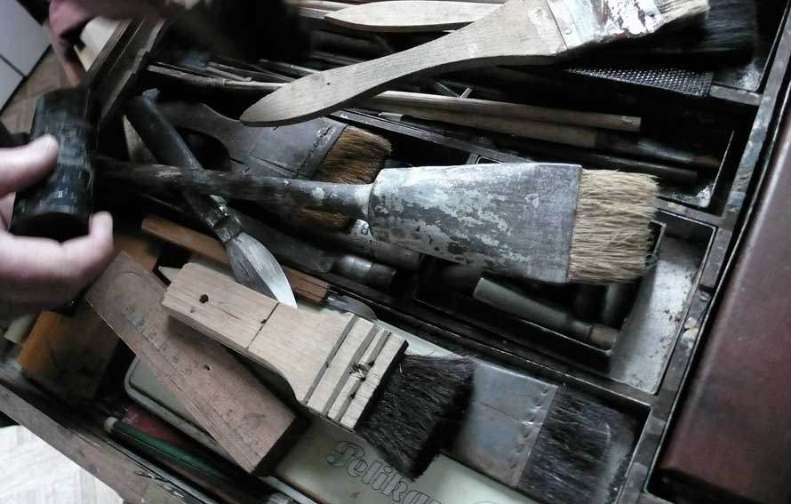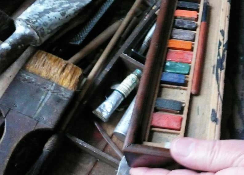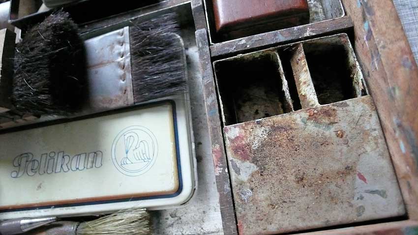 Vor kurzem aufgetaucht ist der Farbenkasten von Ilse Heyden Linden von einem Freund des Bruders Dietrich übergeben.