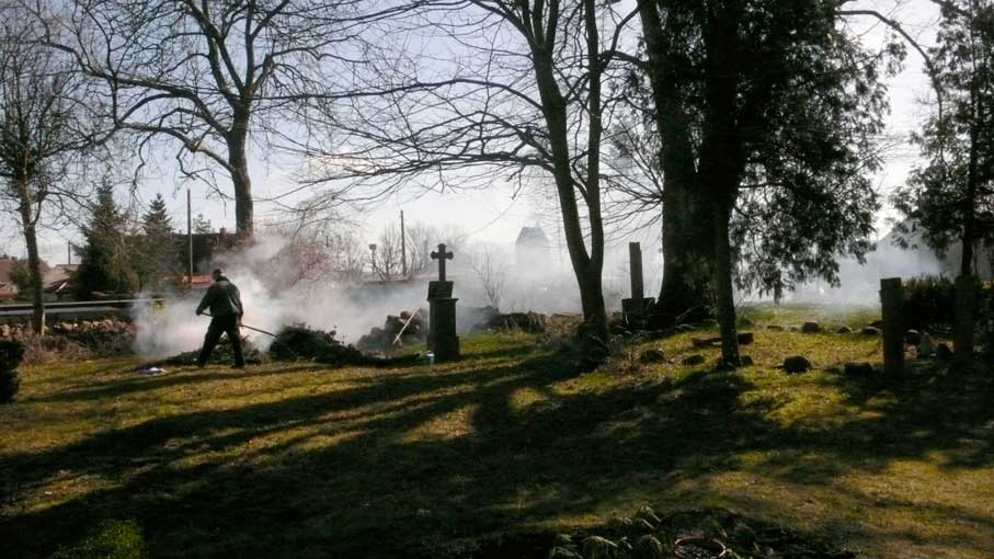 Der junge Baum gerade noch gerettet zuletzt durch das Wasser vom Friedhof, wo jetzt der Durchgang noch wie immer es er möglicht, wie den Weg über den Rasen und Zaun. Sie sagen, da geht niemand. Deshaln nutz alles weg.