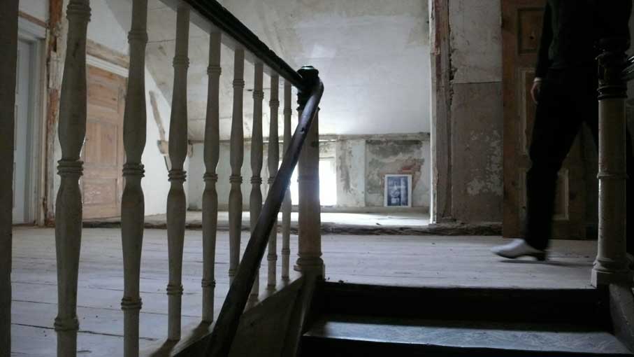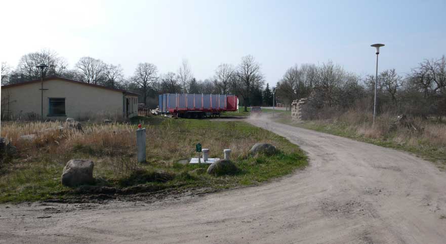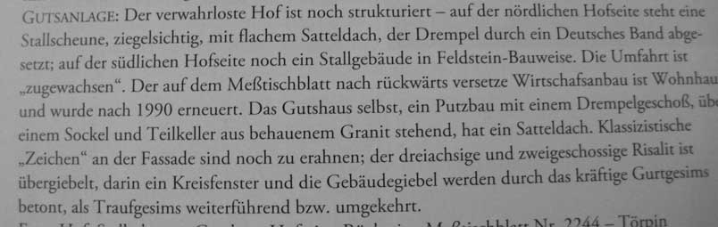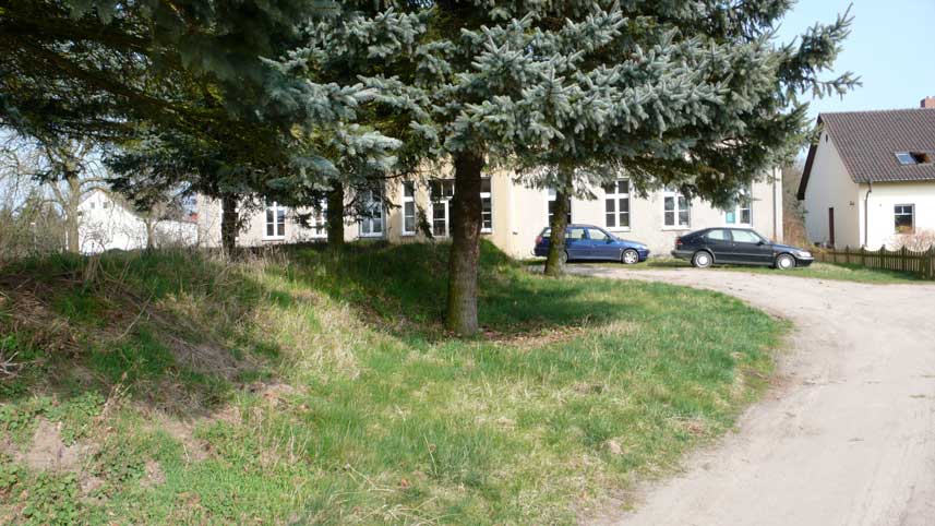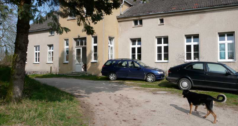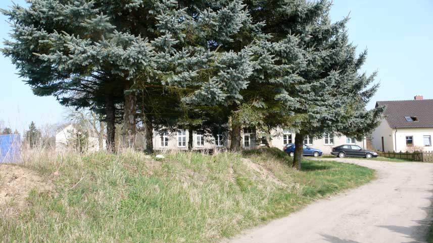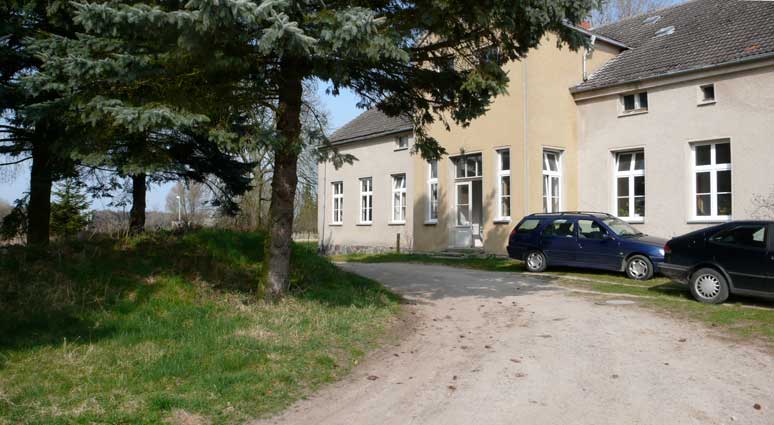 Vor einigen Jahren erwarb Herr N. das Gutshaus als DDR-Erbe. Sein Grundstück endet einen Meter vor dem Haus. Die Zufahrt gehört der Gemeinde und umkreist eine Fläche, die ein anderer zur Ablagerung seiner LKWs nutzt. Umstanden von LPG Koniferen. Das alles zeugt von Planwidrigkeit von Anfang an.