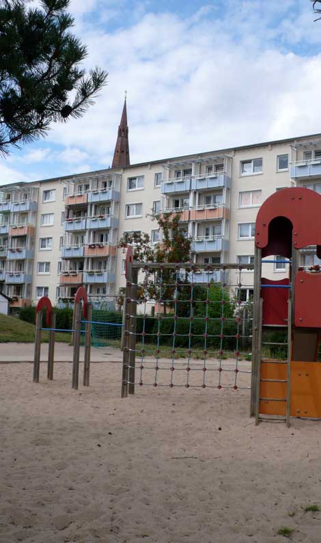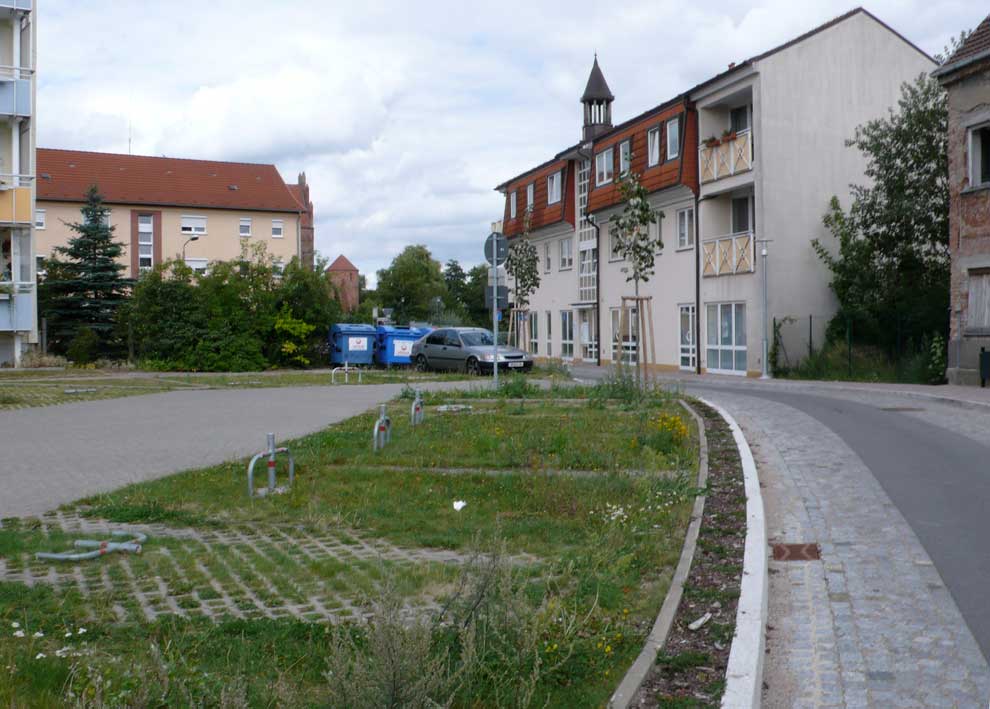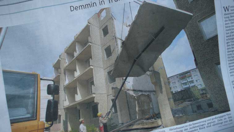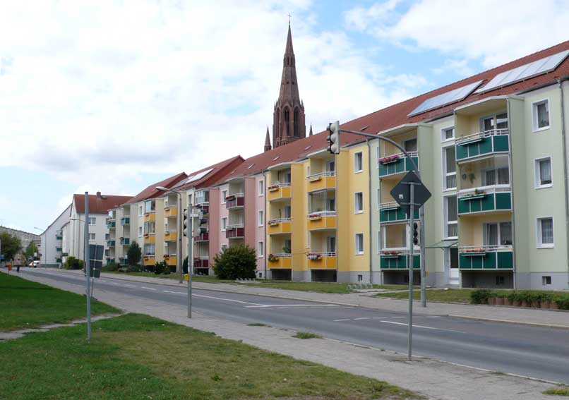 Die vorderen Plattenbauten weg, kommen die hinteren erst richtig ins Bild un die neuen warten schon.