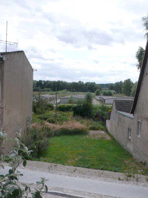 Angrenzend das Gras der Wiese statt Beton und neu gesetzte Weidenzweige befreit vom Unrat und Grauen des Unlandes, wie sie das nennen, was ich vorfand als ich kam. Sie, die nun sagen, wie es hier aussehen soll, demokratisch. In Gemeinderäten von Nossendorf und denen der Kirche und Ämter in Demmin.