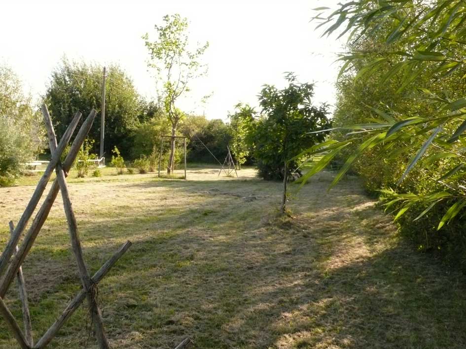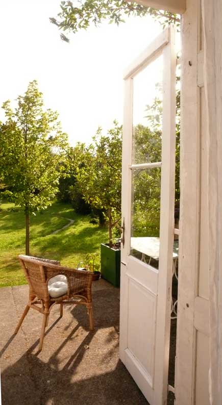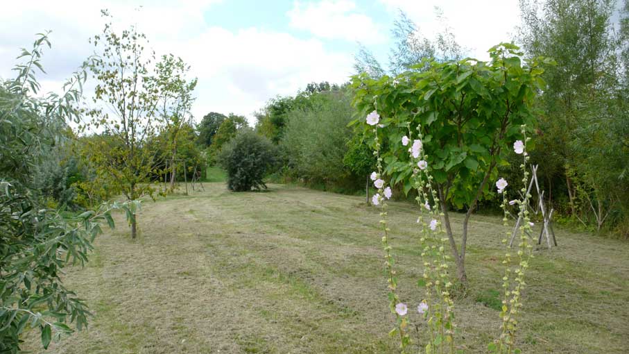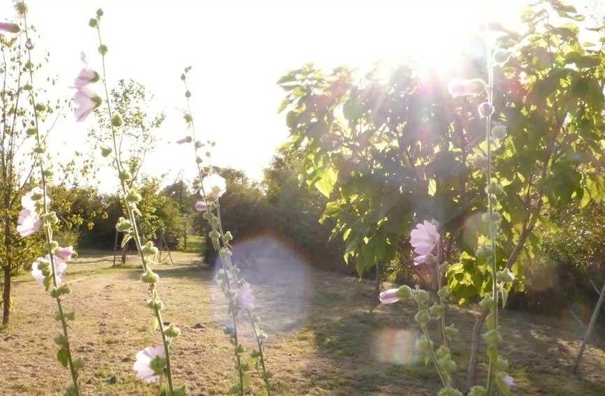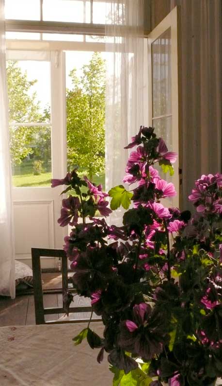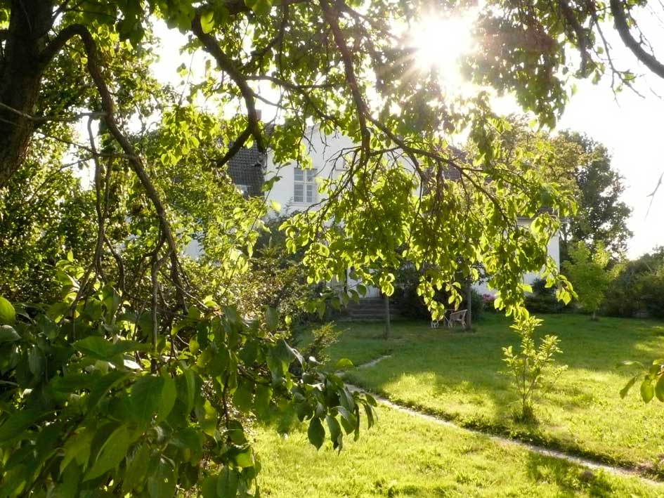 jeden Morgen , wenn die Sonne aufgeht, scheint sie wieder durch geöffnete Türen und Fenster, aus der Richtung des ehemaligen Parks über die neuen Wiesen und durch neu gesetzte Bäume.