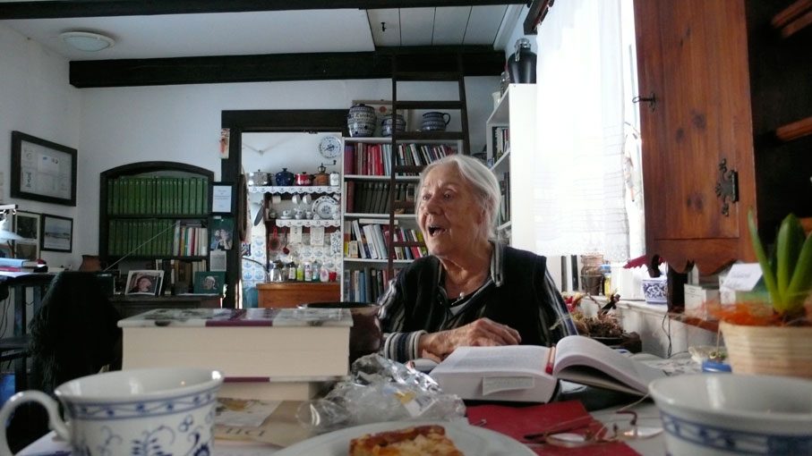 Fortsetzung Besuch bei Käthe Reichel in Buckow, gleich von Brecht um die Ecke durch den Wald. Nach 2 1/2 Stunden Zug bis Berlin und von da 1 1/2 Stunden Auto Richtung Oder. Für den, der nie aus dem Haus geht, -wozu- eine ziemliche Reise. Für die so am Ende der Welten, wohl ein besonderer, ein riskanter Empfang.