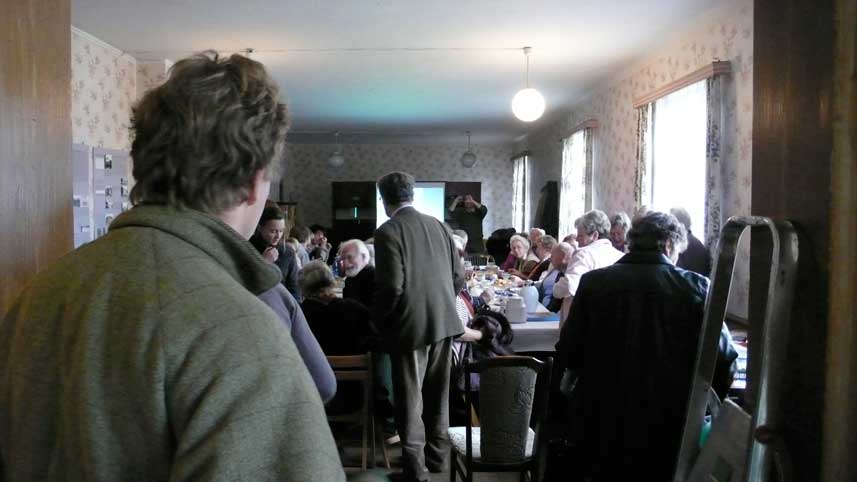 Die Famile Hesse (Heyden-Linden ) machte es möglich. Ein Raum des ehemaligen Hauses der Ilse HL. Den Müll etwas beiseite geschoben die DDR Tapeten nicht achtend, die sonst kalten Öfen wieder warm. Hoffentlich gehts weiter so.