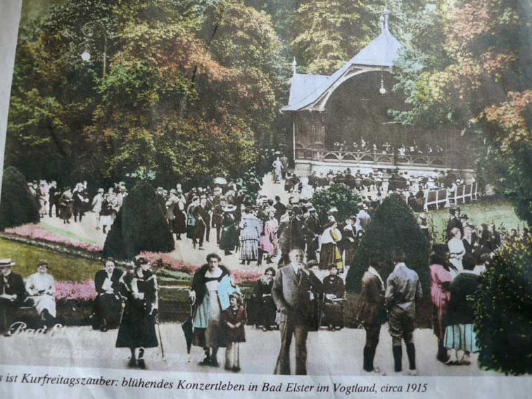 Wohin es ging im frühem Sommer vor der Ernte. Im Kriege andere Kleider aber noch Musik und offener Platz. Herren und Damen in getrennten Bädern, letztere allesamt nun unbekleidet, und der Junge mittenmang hatte was zu schauen. Die gleichen wohlgekleideten Damen des Konzerts nun alle nackt. Ein Fest. Manchmal gings auch hinauf in die Wälder ins Waldcafe und nach Asch